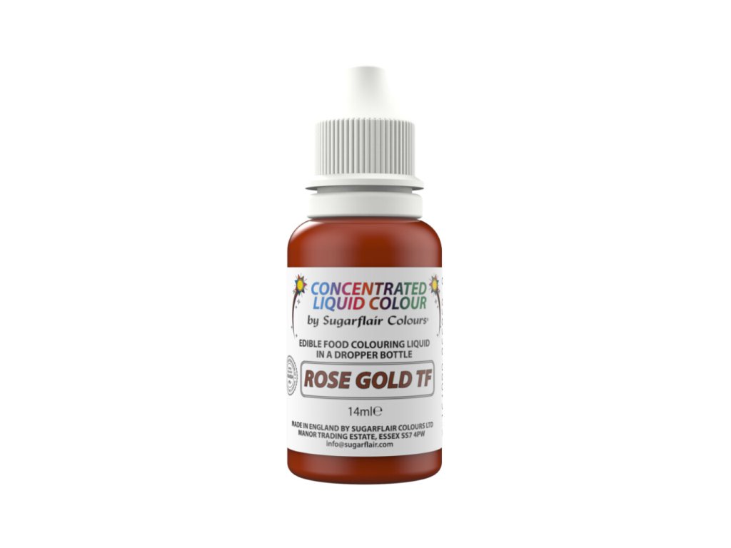 Tekutá potravinářská barva v odstínu rose gold určená pro barvení polev, krémů, cukrářských hmot, směsí či kresbu. Díky lahvičce s kapátkem umožňuje přesné dávkování a plnou kontrolu nad intenzitou barvy. Vhodná pro profesionální i domácí použití.