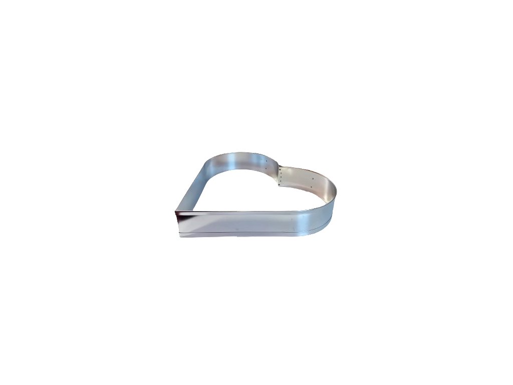 Rozměry: 26 × 25 cm, výška: 6 cm, tvar: srdce, materiál: pocínovaný plech, ruční výroba, určeno pro krátkodobý styk s potravinami, zejména na pečení.
