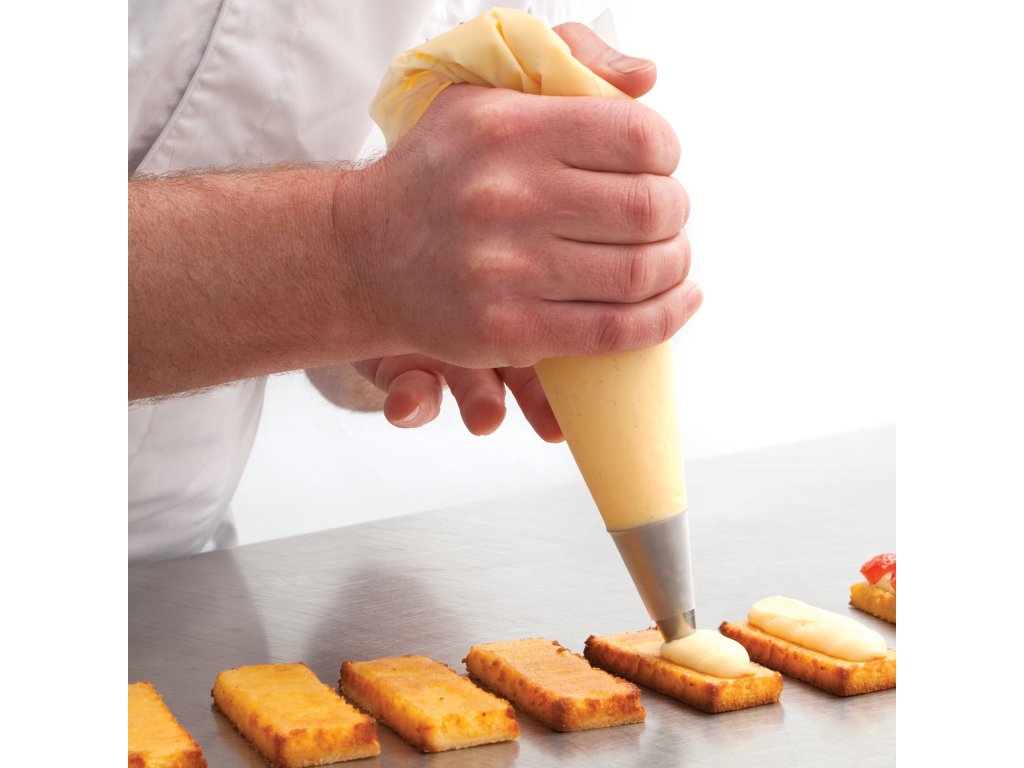 - Sáček naplňte krémem, těstem nebo polevou.