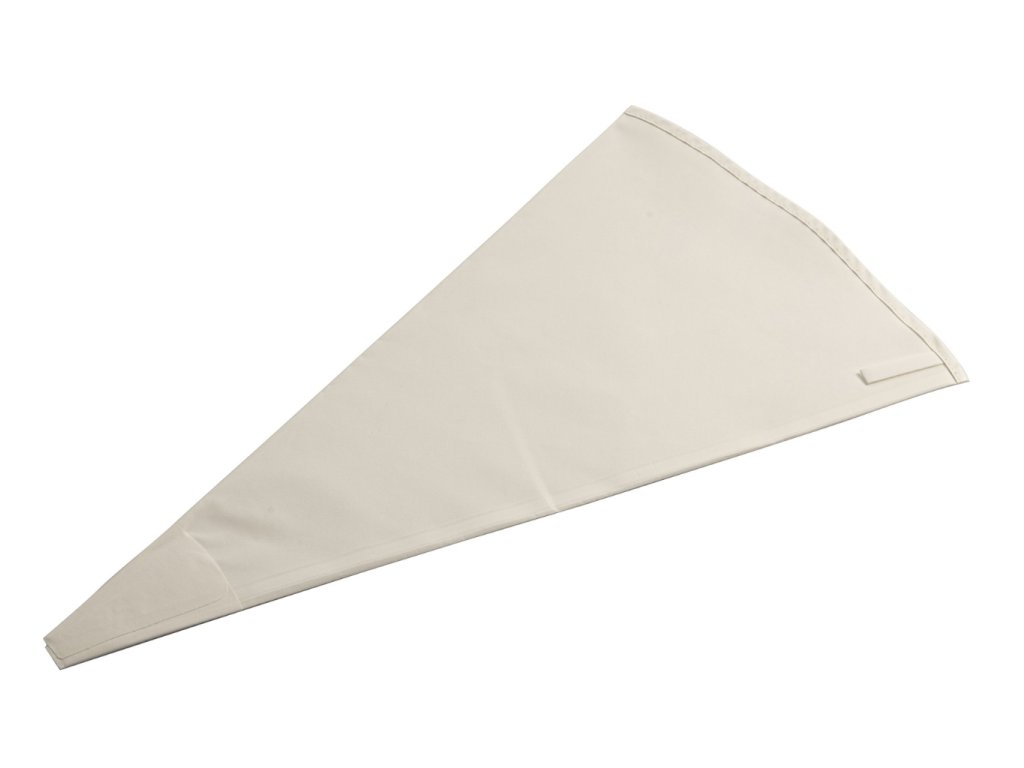 Sáček Cotton 55 cm je ušitý z pevné bavlněné tkaniny potažené polyuretanem, takže odolá silnému tlaku při zdobení tuhými máslovými krémy i plnění odpalovaného těsta. Obrácené a prošité okraje brání třepení, zesílená špička zvládne opakované střihy pro různé trysky a horní poutko umožní sáček po práci zavěsit a vysušit.