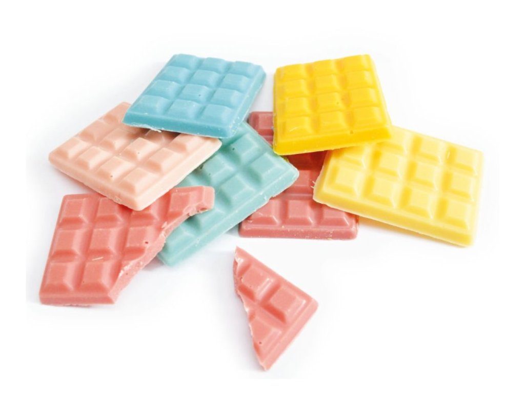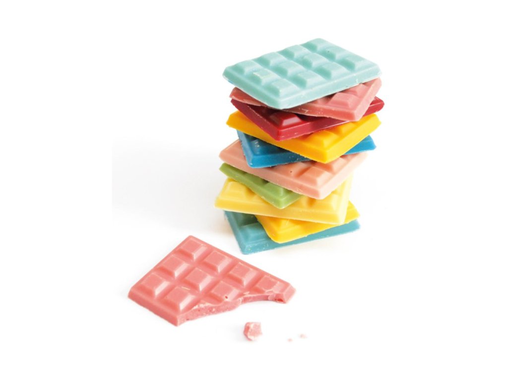- Čokoláda: barvu přimíchejte do rozehřáté bílé čokolády (ideálně 35–40 °C), poté temperujte.