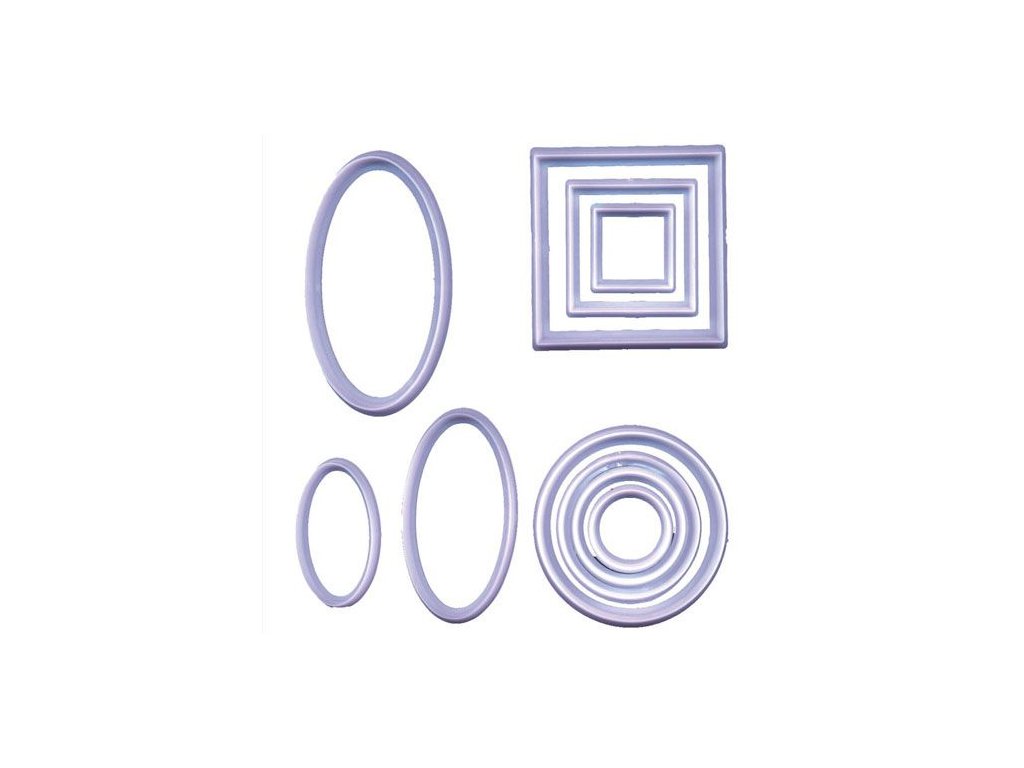 Kompletní sada 10 vykrajovátek v geometrických tvarech.