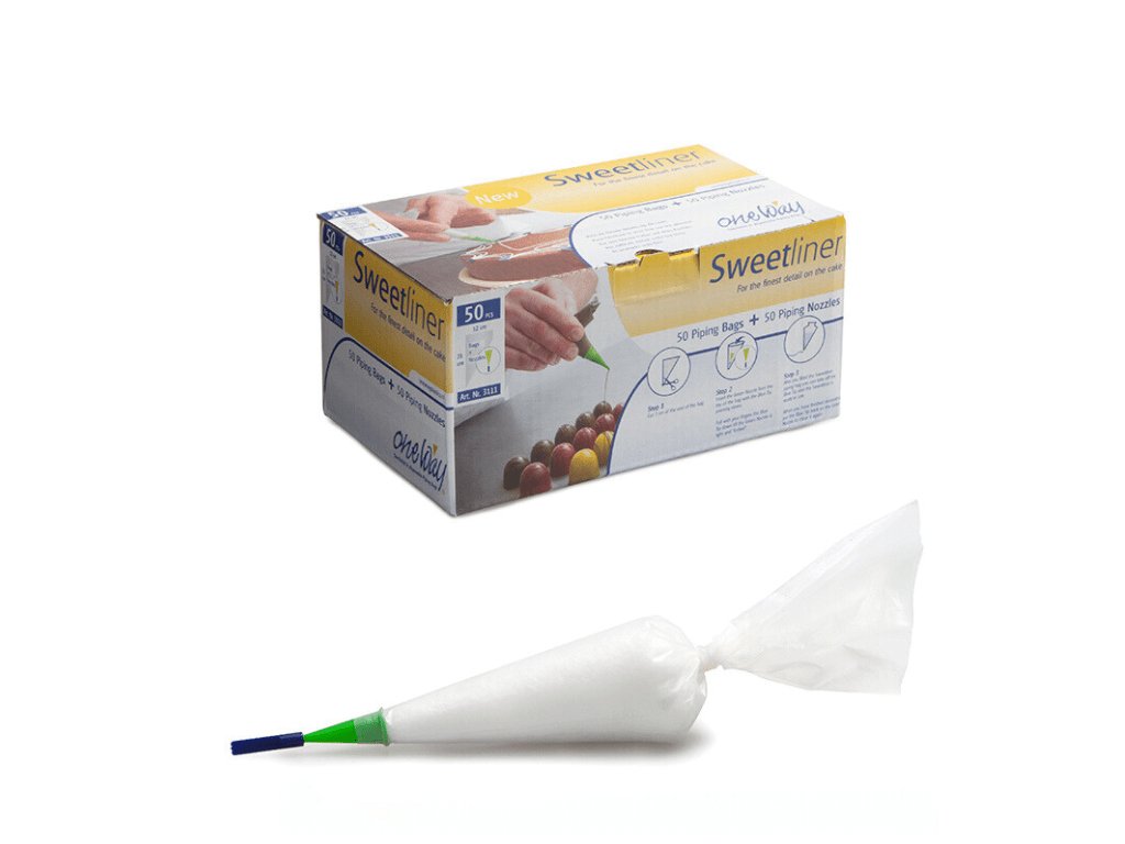 Jednorázové trezírovací sáčky ONE WAY v sadě se zdobícími špičkami (O 0,8 mm) jsou praktické a poskytují maximální kontrolu při každém pohybu ruky. Kombinace 4vrstvé fólie o tloušťce 80 mikronů umožňuje pohodlný úchop i při delší práci. Díky hladkému vnitřnímu povrchu je plnění i vytlačování obsahu sáčku hračkou. Sáček je možné předem naplnit a později ohřát – v mikrovlnce i ve vodní lázni. A po zdobení? Jednoduše vyhodíte.