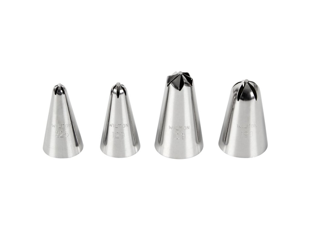 Wilton Drop Flowers Tip Set dělá zdobení dortů a jiných dobrot ještě jednodušší a rychlejší díky kapkovým květinám ve čtyřech velikostech. Ať už chcete přidat jednoduchý akcent nebo ozdobit malou květinu na mini pamlsku nebo celý dort s květinami, tato sada je pro to ideální.