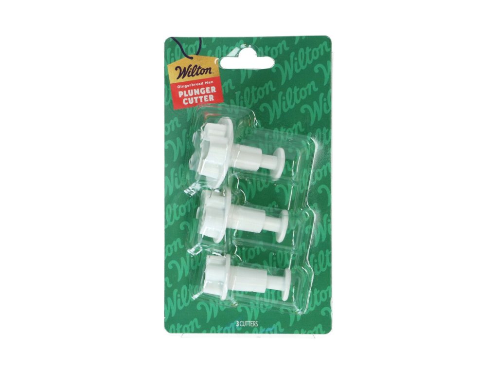 Praktická sada vykrajovátek Perníček Wilton obsahuje tři formičky s pístovým mechanismem, který vytlačí tvar i jemný vzor do těsta nebo fondánu. Každé vykrajovátko umožňuje snadno vytvořit dokonale tvarované perníčky, sušenky nebo dekorace s precizním embosovaným detailem – ideální pro vánoční pečení i dekorování dortů.