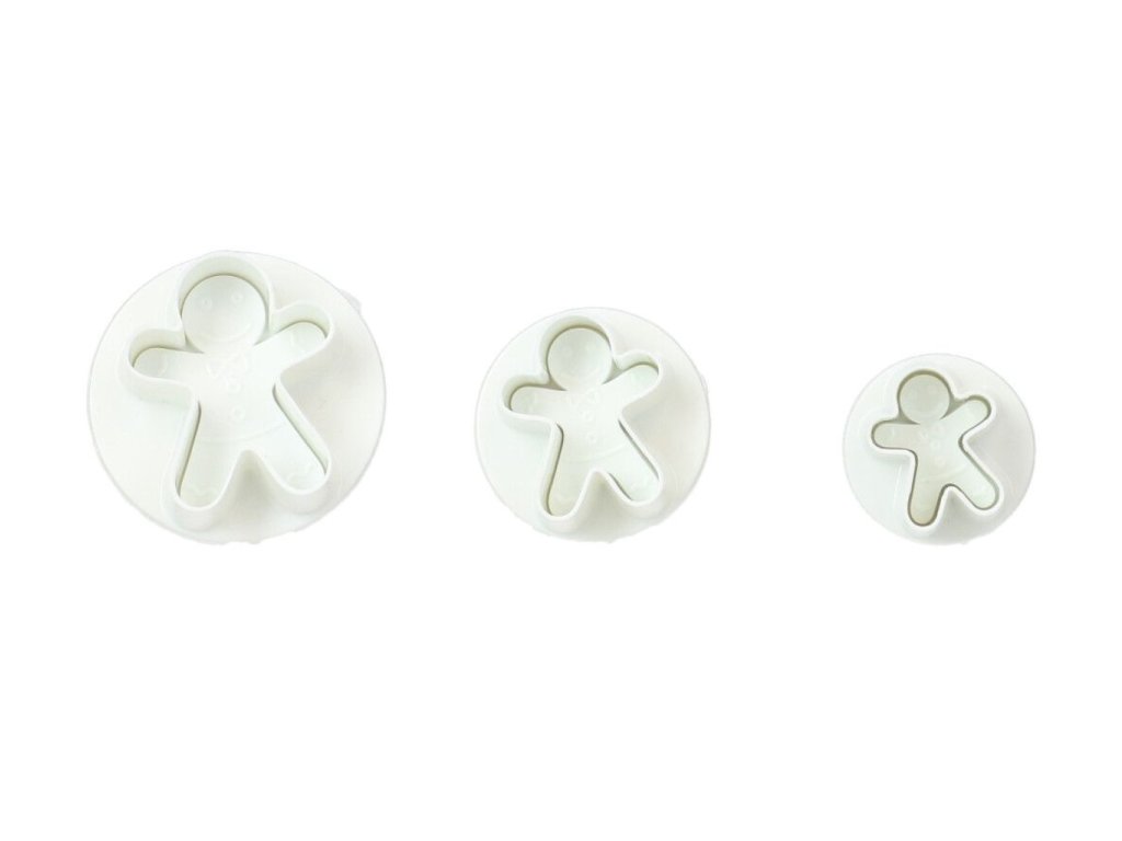 Sada tří vykrajovátek ve tvaru perníčků s pístem. Různé velikosti pro vytlačení tvaru i detailního vzoru do těsta, fondánu nebo marcipánu.
