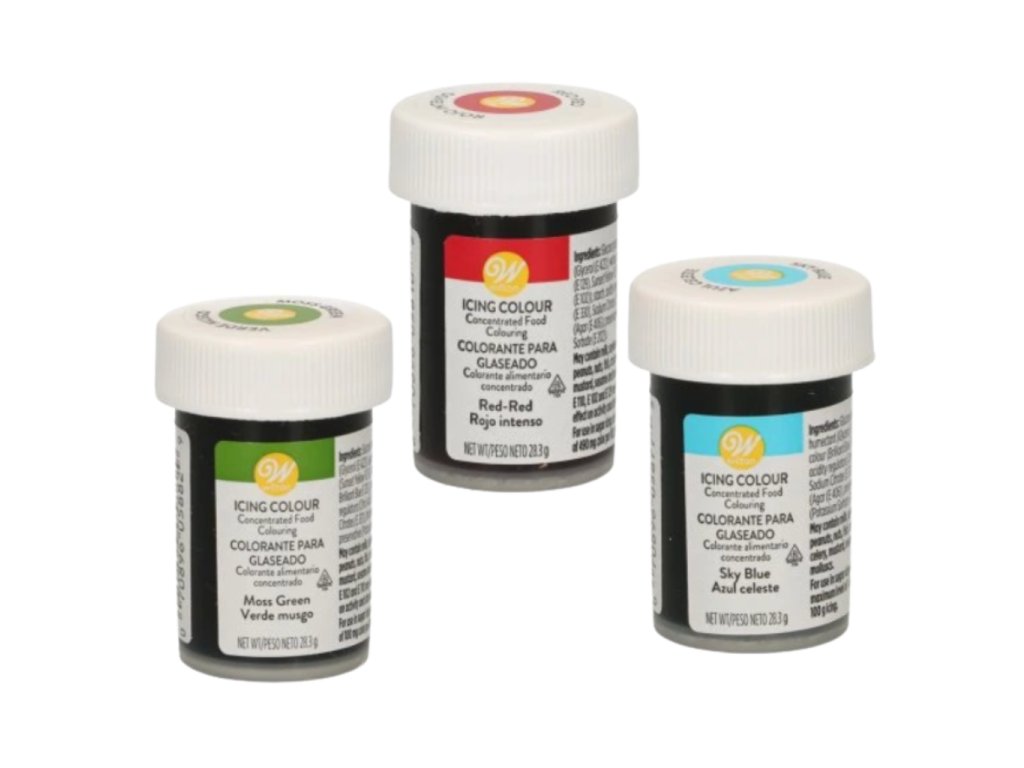 Základní sada 3 gelových barev Wilton: Christmas Red, Sky blue, Moss Green