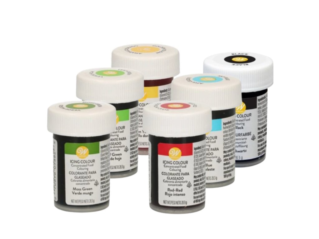 Sada gelových barev Wilton přináší 6 nejčastěji používaných intenzivních odstínů, které promění vaše dezerty v umělecká díla. Ať už zdobíte fondán, marcipán, máslový krém nebo těsto, s těmito barvami dosáhnete sytých tónů i jemných pastelových efektů. V sadě najdete Black, Golden Yellow, Christmas Red, Sky Blue, Leaf Green, Moss Green