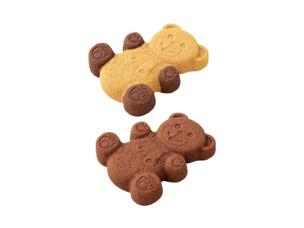 - Piškotoví medvídci – piškotové nebo lité těsto, případně plněné marmeládou či čokoládou