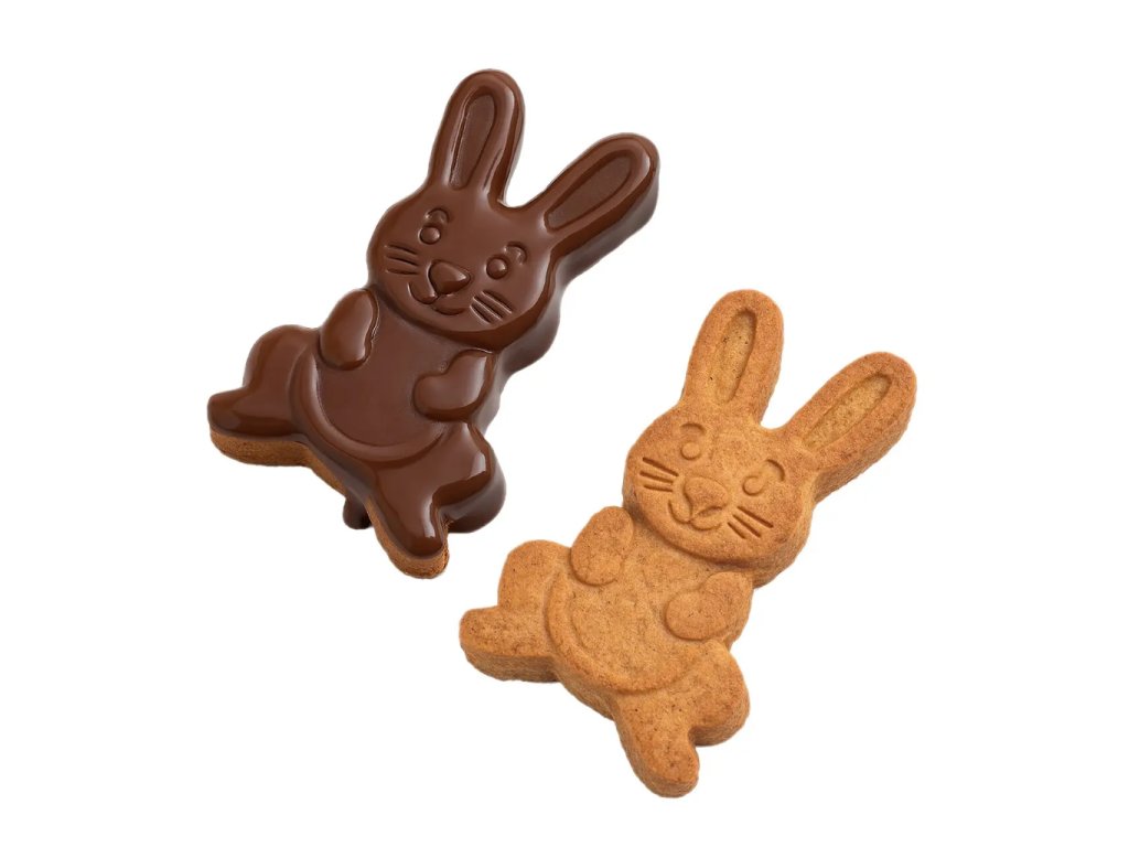 Hravá velikonoční forma, která spojuje snadné pečení i výrobu domácí čokolády. Nepřilnavá silikonová forma ve tvaru zajíčků umožňuje rychlou a rovnoměrnou přípravu sušenek i čokoládových dekorů bez složité manipulace. Díky pružnému materiálu zachovává tvar, detaily jsou čisté a hotové výrobky lze snadno vyjmout. Ideální volba pro velikonoční pečení i kreativní domácí výrobu sladkostí.