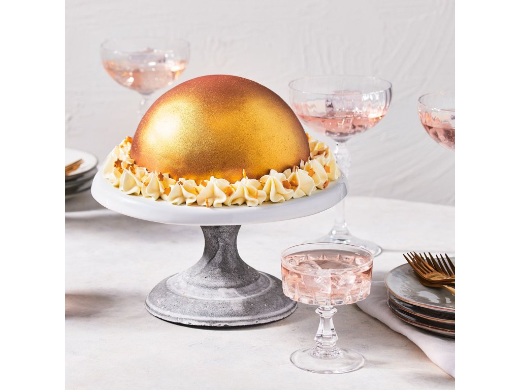 S FunCakes Metallic Spray Gold můžete dát svým dortům, čokoládě, krémům, cupcakům, modelovací pastě, sušenkám a dalším dezertům krásný modrý perleťový lesk. Lesk na dortu úplně ztvrdne, takže při dotyku na dortu neuvidíte otisky prstů.
