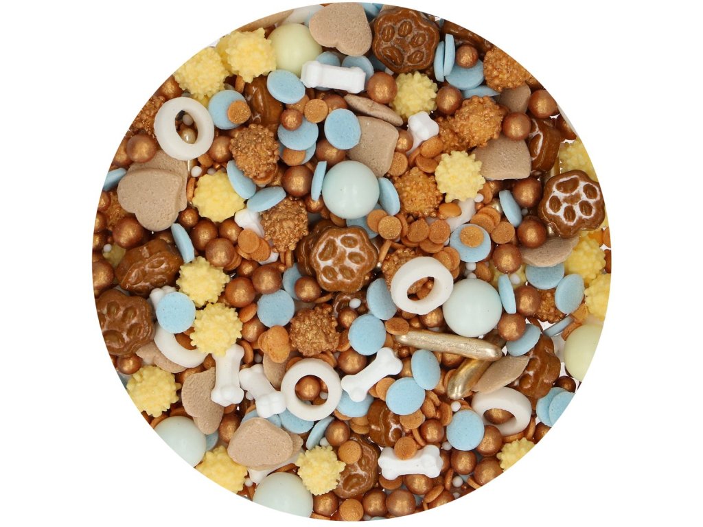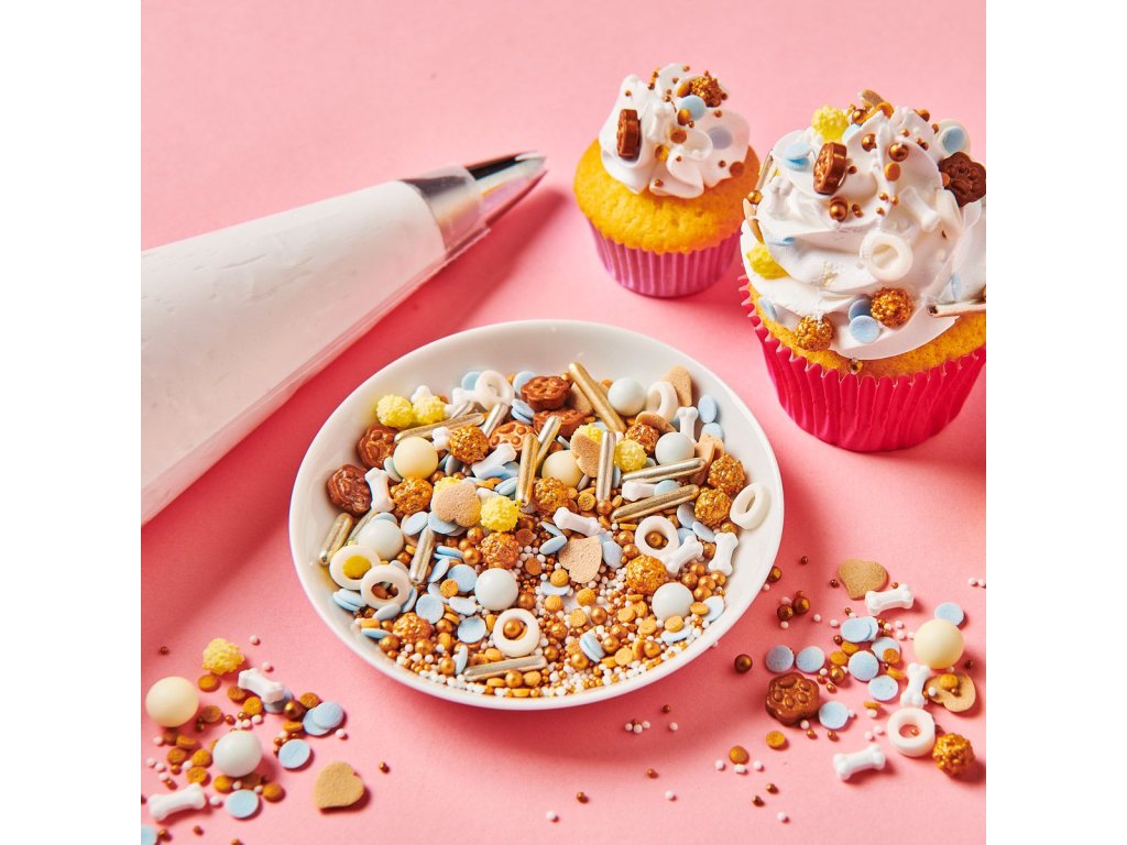 Tento prémiový mix kombinuje malé perličky, konfetky a detailně propracované 3D tvary, které promění každý dort, cupcake nebo sušenku v malé cukrářské umění. Perfektní volba pro narozeninové oslavy všech milovníků pejsků.
