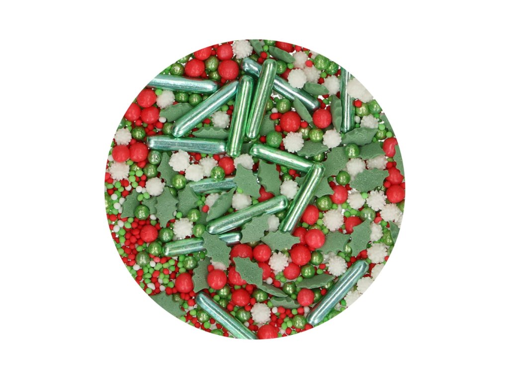 Vánoční cukrářské sypání Holiday 65 g je hravá směs perliček, kuliček, tyčinek a cukrových stromečků v typických svátečních barvách. Ideální pro zdobení cupcakes, perníčků, dortů, rolád, makronek i slavnostních dezertů. Dodá jim okamžitě vánoční atmosféru a profesionální vzhled.