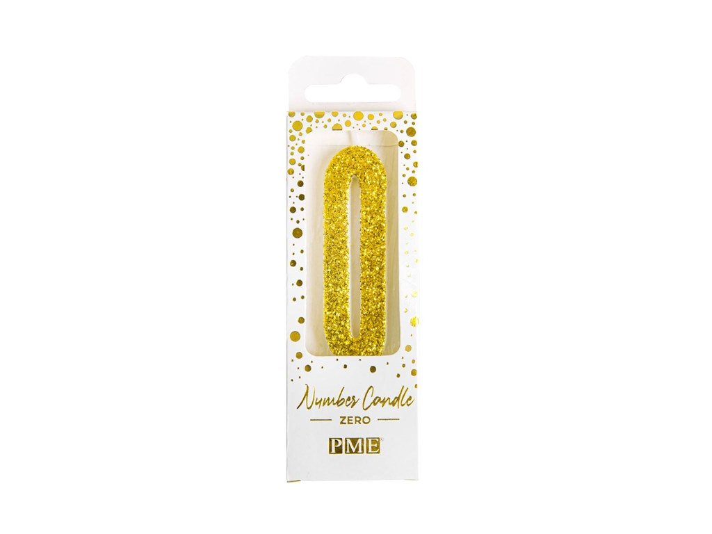 Dortová svíčka se zlatým třpytem, číslo – 0