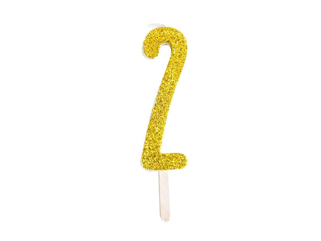 Dortová svíčka se zlatým třpytem, číslo – 2
