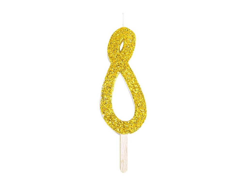 Dortová svíčka se zlatým třpytem, číslo – 8