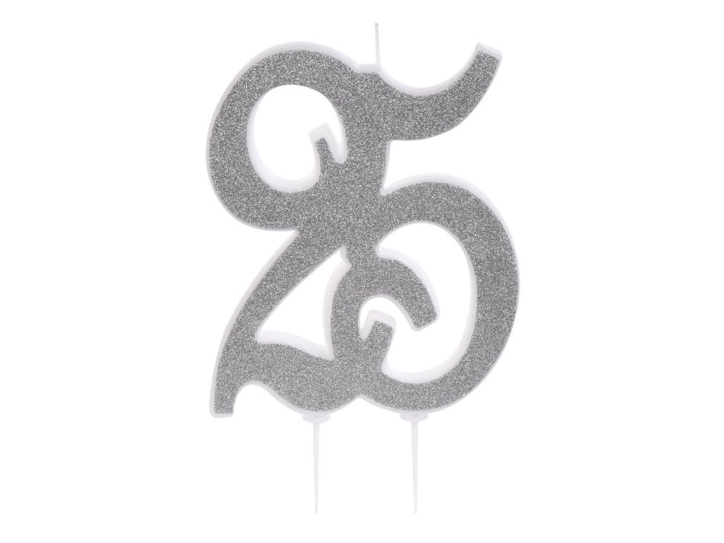 Dortová svíčka stříbrná třpytivá – číslo 25