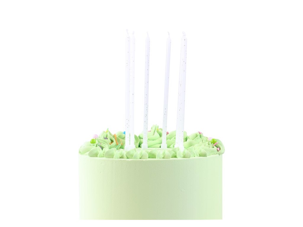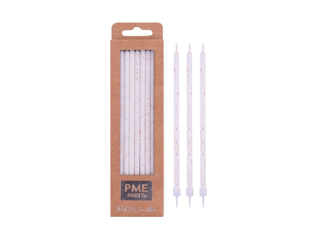 Svíčky – Dlouhé bílé se třpytkami (16 ks) PME