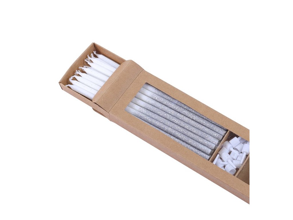 Výška: 18 cm, barva: bílo-stříbrná, obsah balení: 16 ks svíček + držáky na svíčky, ideální pro zdobení dortů k narozeninám.