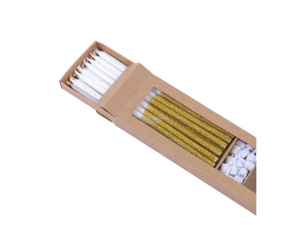 Svíčky – Dlouhé bílo-zlaté (16 ks) PME