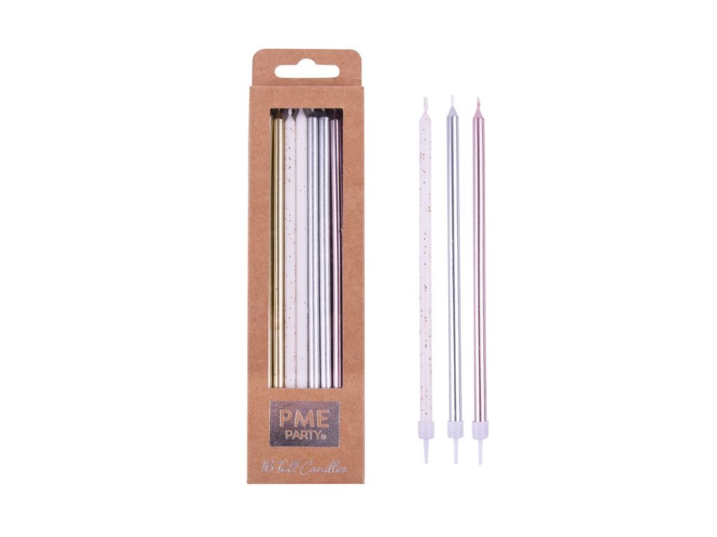 Svíčky – Dlouhé třpytivý mix (16 ks) PME