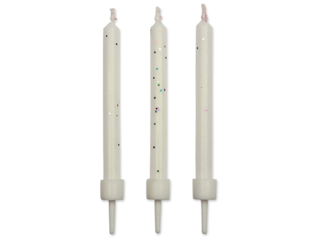 Výška: 6,2 cm, barva: bílá, obsah balení: 10 svíček + 10 držáků na svíčky, perfektní na dokončení narozeninového dortu.