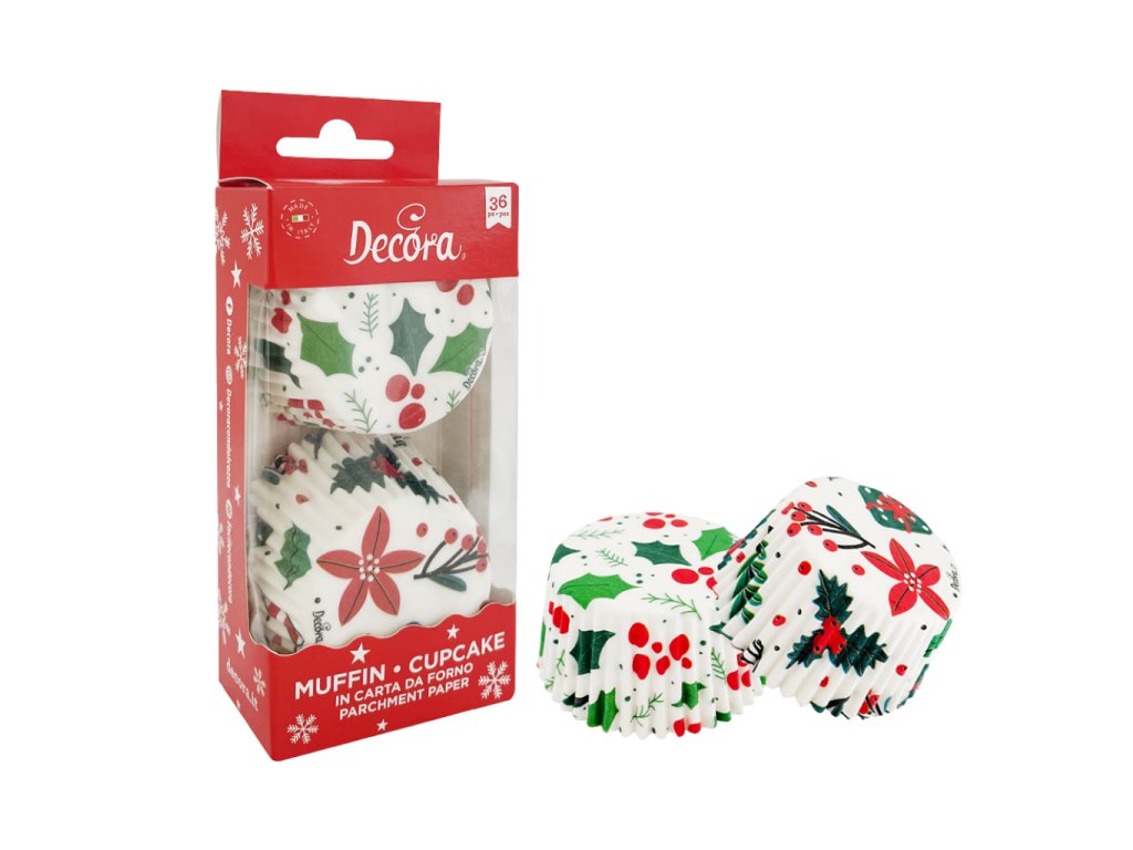 Vánoční košíčky Decora s cesmínou definitivně rozzáří vaše sváteční pečení. Košíčky jsou vyrobeny z kvalitního potravinářského papíru, který odolává i vysokým teplotám a zachovává tvar i barvu při pečení. Ideální pro vánoční muffiny a cupcaky.