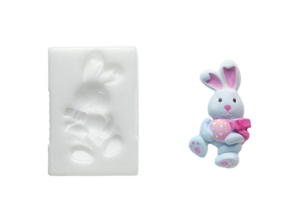 Silikonová forma, velikonoční zajíc, detailní reliéf, pružný materiál, vhodná pro pečení i studené dezerty.