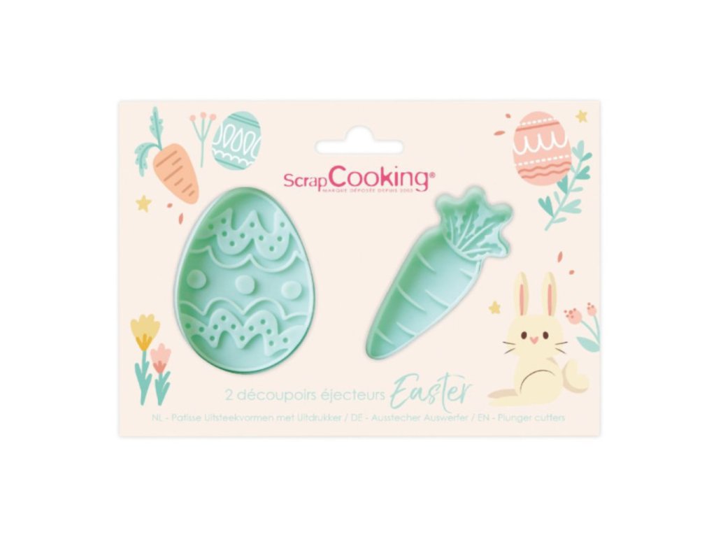 Sada 2 ks vykrajovátek, vajíčko 6,9 × 5,4 cm, mrkev 7,5 × 3,7 cm, materiál plast, pístový mechanismus, ruční mytí.